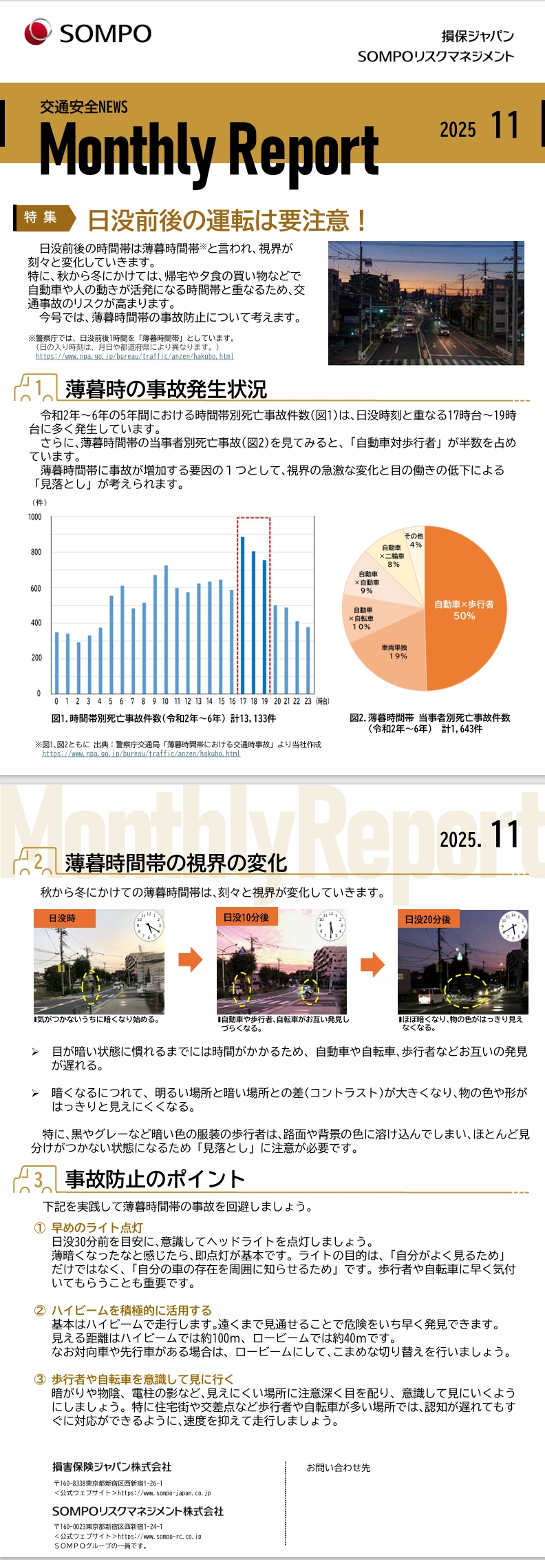 【SOMPOリスクマネジメントより】特集 日没前後の運転は要注意!