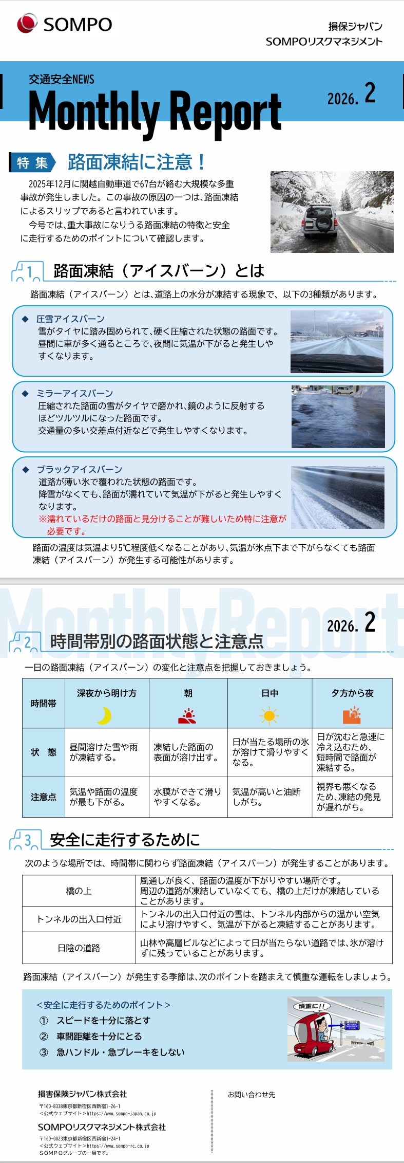【SOMPOリスクマネジメントより】特集 路面凍結に注意!